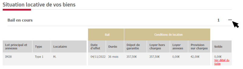 Pour mieux visualiser en détail l'état du solde du loyer, vous pouvez cliquer sur "Voir détail du solde" situé à droite de votre page.