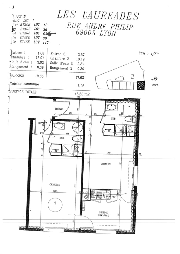 Appartement · Location Lyon (69003) 2 pièces · 44m²