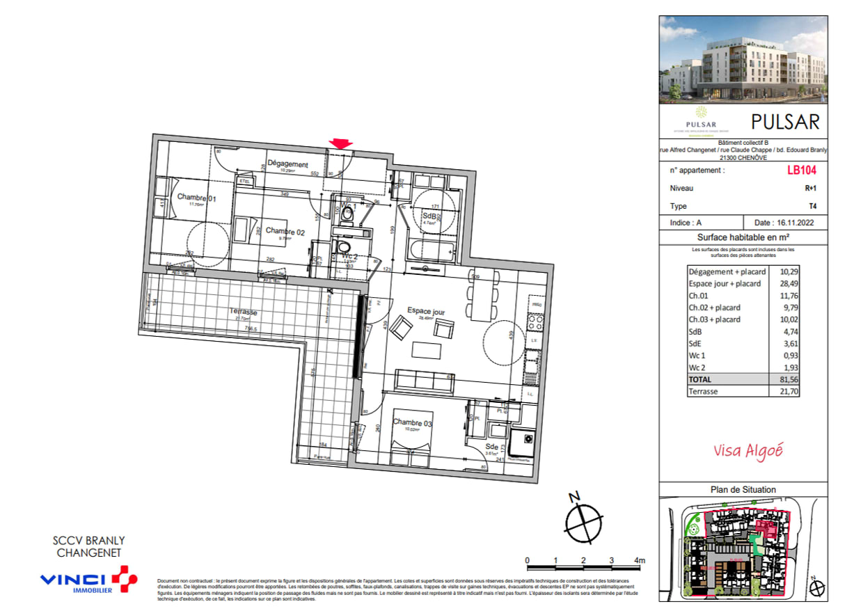 Appartement · Location Chenove (21300) 4 pièces · 82m²