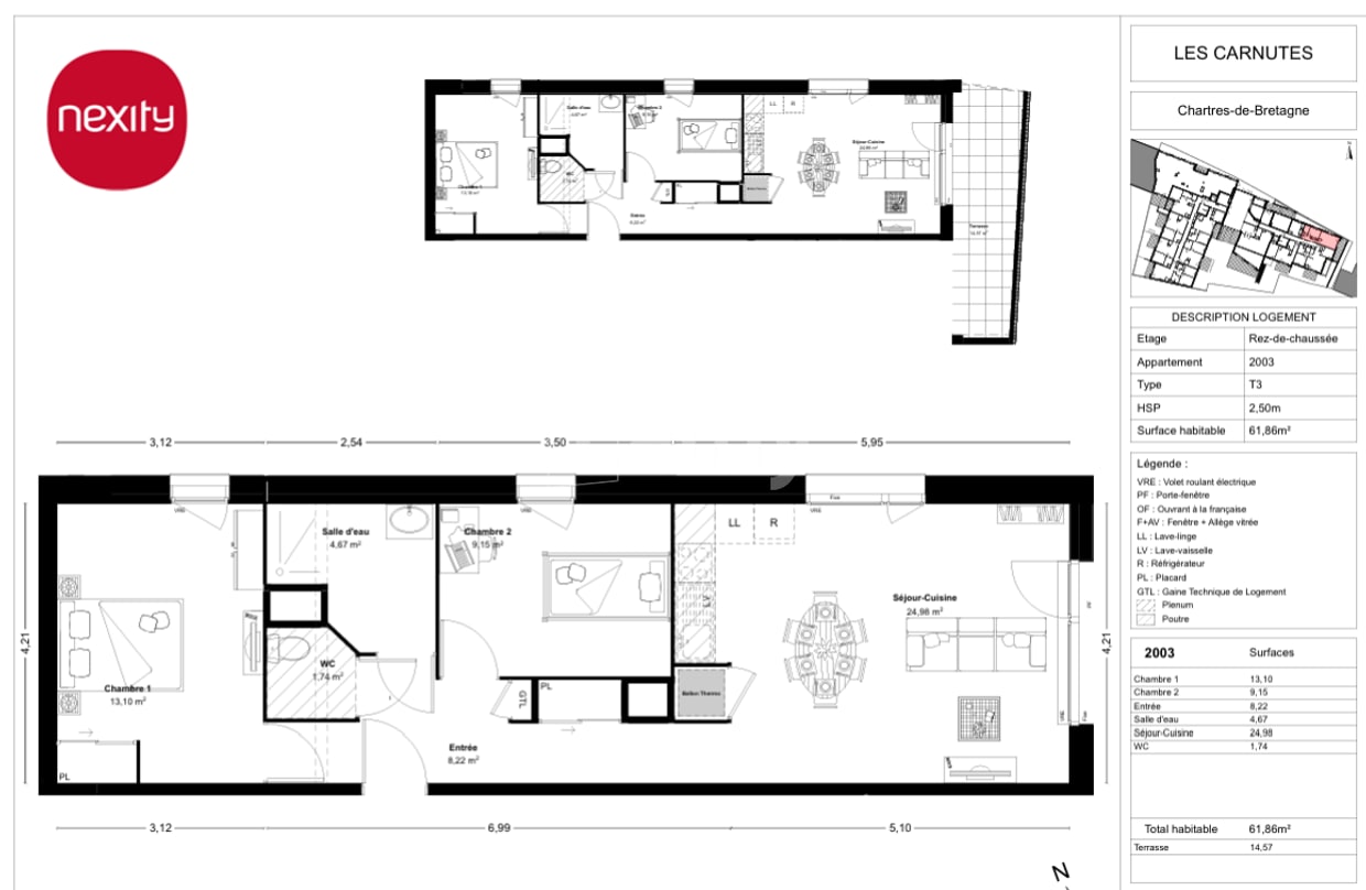 Appartement · Location Chartres De Bretagne (35131) 3 pièces · 62m²