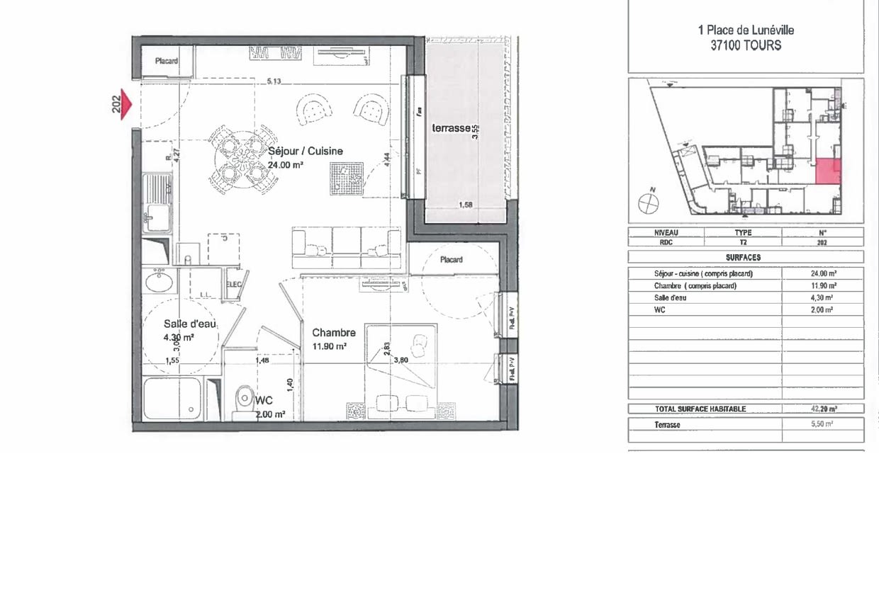 Appartement · Location Tours (37100) 2 pièces · 42m²