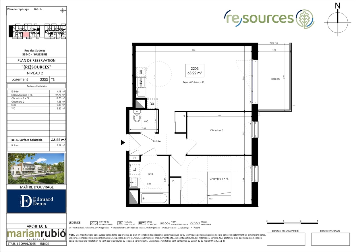 Appartement · Location L Huisserie (53970) 3 pièces · 63m²
